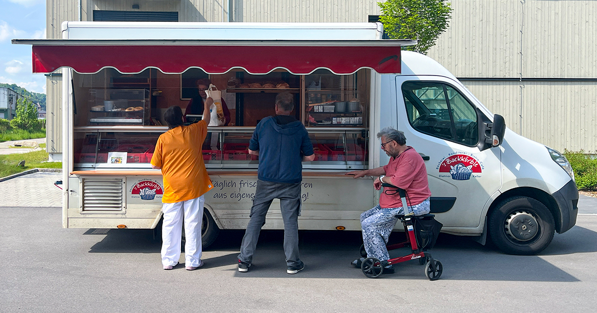 Ab sofort dürfen sich die Bewohnerinnen und Bewohner des Angelika-Wössner-Stifts in Sulz am Neckar sowie Anwohnerinnen und Anwohner aus der Umgebung auf einen regelmäßigen Besuch freuen: Die Bäckerei „’s Backkörble“ aus Fluorn-Winzeln kommt zweimal pro Woche mit ihrem mobilen Verkaufswagen direkt vor die Einrichtung und bietet frische Backwaren aus handwerklicher Herstellung an.